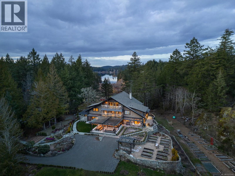 A private 17-acre West Coast lodge estate in Prospect Lake, just 20 minutes from downtown Victoria. Bella Farm is a once-in-a-generation offering, blending timeless architecture with exceptional privacy, beauty, and flexibility. The 5,000+ sq ft main residence is thoughtfully designed for multigenerational living, functioning seamlessly as a gracious single home or adaptable into multiple private living areas for family, guests, or evolving lifestyle needs. Zoned A2 (Rural Residential -Two Dwelling), the property permits a second full-size residence, offering rare long-term value and legacy potential. The grounds are extraordinary, featuring established gardens, orchards, terraced landscapes, and irrigation systems supporting a self-sustaining lifestyle. Detached studio buildings add versatility for creative, wellness, or professional use. Bella Farm may be offered fully furnished, allowing for an effortless transition into a beautifully curated home. Additional information available under the property's established name, (id:39198)