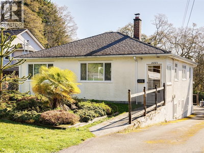 Welcome to 3551 Doncaster Dr, a charming two-bedroom home perfectly situated in a peaceful and highly desirable neighborhood. The main level features a sunny living room that fills with natural light, while the kitchen offers a beautiful view overlooking Mt. Tolmie and access to a spacious deck—ideal for relaxing or entertaining with friends and family. Downstairs, you’ll find a large unfinished basement brimming with potential—perfect for creating additional living space, a home gym, or a recreation room tailored to your needs. The detached workshop/studio offers endless flexibility for hobbies, creative projects, or a home office. Garden enthusiasts will love the deer-proofed garden, providing a secure space for flowers, vegetables, or your own landscaping vision. While the home could benefit from some updates, it offers tremendous potential for those looking to add their personal touch. Enjoy the convenience of being just a stone’s throw from Cedar Hill Golf Course, as well as an abundance of hiking trails and nearby shopping centers. This is a rare opportunity to own a home in a quiet, friendly neighborhood with everything you need close at hand. (id:39198)