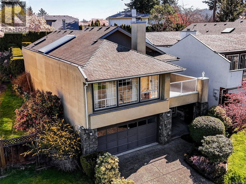Tucked away on a quiet Broadmead cul-de-sac, this bright and beautifully maintained home impresses from the moment you step inside. Gleaming oak hardwood flows up the staircase and along the hallway, setting a warm and welcoming tone throughout. The large eat-in kitchen features oak cabinetry and patio doors opening to a front enclosed deck, while a spacious family room off the kitchen leads to a side deck. The generous in-line living and dining room with fireplace is anchored by a bright sunroom — complete with skylight and three patio doors. Two bedrooms are well served by two full bathrooms, with the primary suite enjoying a private 3-piece ensuite with glassed shower stall. Built-in vacuum throughout. Outside, the professionally landscaped and well maintained grounds feature a private rear yard with underground sprinklers, and the double garage provides access to a full stand-up basement storage area at the rear — a rare and practical bonus. (id:39198)