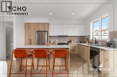 Exceptional Shoreline plan offers 1,475 sq. ft. of thoughtfully designed living space across 3 levels. Elegant designer interiors, the open-concept main floor features 9' ceilings, gourmet kitchen with modern appliances, engineered stone countertops, two-tone cabinetry, & matte black hardware, flowing seamlessly to a generous dining area, living rm, & large private balcony. Upper hosts 3 bedrooms including a serene primary suite with walk-in closet & frameless glass ensuite. Lower level flex rm offers ideal space for an office, gym, or guest rm alongside a built-in garage. Premium finishes throughout include luxury vinyl plank flooring, large-format tiled bathrooms, & ductless heat pump. Professionally landscaped yard with private patio, wood fencing, & personal entry gate. Steps to Royal Bay's ample amenities, parks, and the oceanfront. Visit the HomeStore at 394 Tradewinds Ave, Sat to Thurs 12–4 pm. Price is plus GST; measurements are approximate. Photos are of a similar show home. (id:39198)