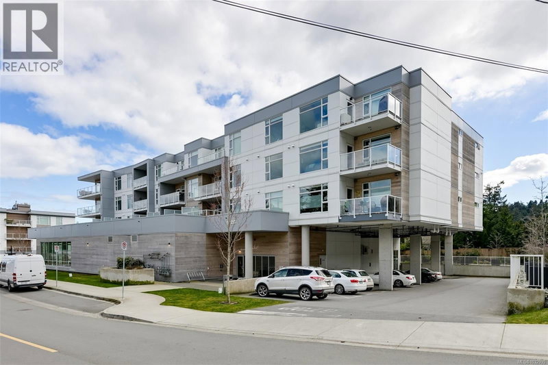 Enjoy seaside living at the Haro in sought after Cordova Bay! This beautiful bright modern 2 bedroom and 2 bathroom condo features high quality finishing throughout, including gorgeous hardwood flooring, an entertainment style kitchen with a large island, gas stove, quartz counters, stainless steel appliances, electric blinds, and heated tile flooring in the bathrooms. The spacious balcony off the living room offers lovely ocean views and room to relax or BBQ. There's secure underground parking with an EV charger, separate storage, and bike storage. The complex offers great amenities, including Anytime Fitness, a sushi restaurant, an Italian deli and more! Just steps to the beach, Lochside trail, Doumac Park Forest, and a short walk to Matticks Farm and Cordova Bay Golf Course. Plus, an easy commute to downtown, the ferries, and the airport. (id:39198)