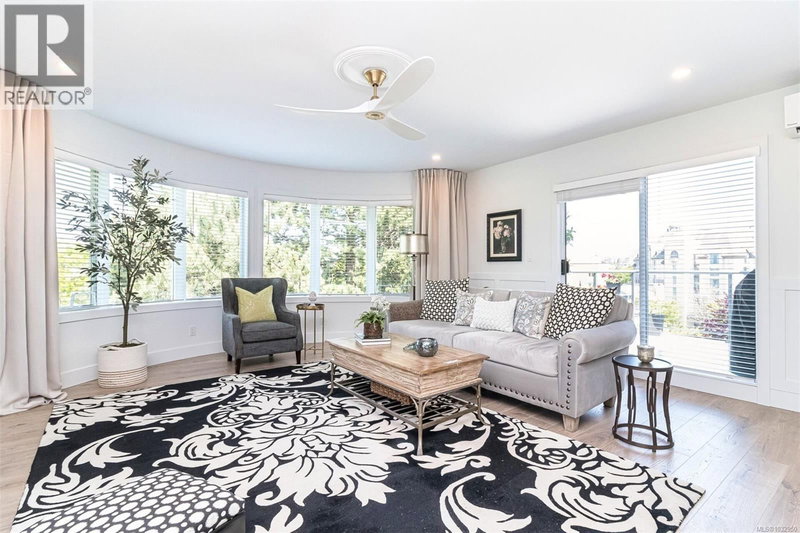 Stunning top floor, corner unit, with partial water view. Stripped back to its studs in 2023 - everything in this condo is new. Custom cabinetry; quartz counters; wide plank floors; heated tile in bathrooms; natural gas F/P w/cast stone mantel; S/S appliances; Epoxy deck; & Heat/AC pump. Rooms are generously sized in this open plan which includes windows on three sides. Kitchen boasts a 9ft. peninsula - ample prep space/room for entertaining. It also houses a coffee/wine bar, pantry cabinet, and area for a bistro table. Primary bdrm with W/I closet, & access to the deck = a great place to enjoy morning coffee or cocktails & BBQ. Ensuite has 8 ft. double vanity & over-sized tile shower with 2 spray heads & bench. 2nd bdrm acts as an office/guest room & provides a bright space for guests, alongside the conveniently located main bath. In-suite laundry provides plenty of room & extra storage. Well-managed bldg with large CRF. Conveniences: secure u/g parking with car wash area, storage locker, beautifully landscaped courtyard, lounge & boardroom, bike storage, and community rooftop deck overlooking the harbour. “Location, Location” aptly applies here - an 8 min. walk to downtown restaurants & shops, a 15 min. walk to the Parliament buildings, and the Songhees Walkway & Galloping Goose Trail are both located mere steps from your front door. This West Coast styled beauty is immaculate - and ready for you to call home. (id:39198)